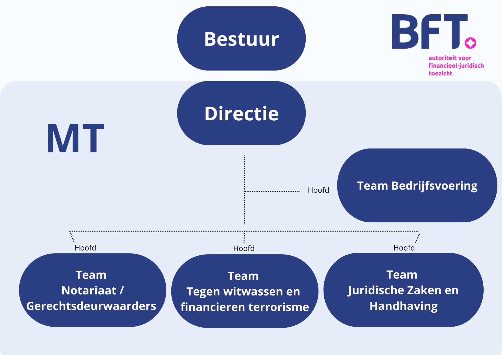 BFT is een zogenaamd zelfstandig bestuursorgaan (ZBO). Dat betekent dat BFT onafhankelijk van de rijksoverheid functioneert en zijn eigen keuzes maakt in de uitvoering van het toezicht.